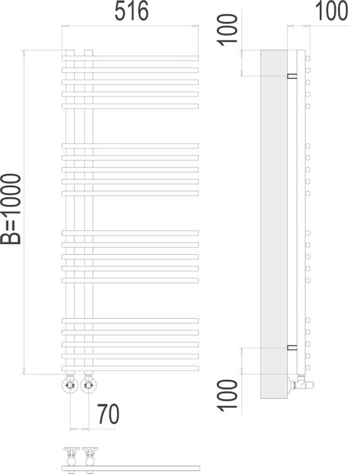 Полотенцесушитель водяной Terminus Астра П20 70х1000, ширина 52 см, высота 100 см, нижнее подключение 7 см, цвет нержавеющая сталь