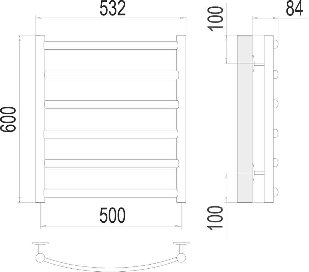 Полотенцесушитель водяной Terminus Атланта+ П6 500х600, ширина 53 см, высота 60 см, цвет нержавеющая сталь