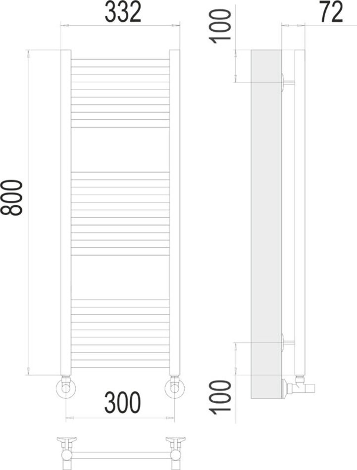 Полотенцесушитель водяной Terminus Аврора 4670078529299, П16 300х800, ширина 33.2 см, высота 80 см, хром