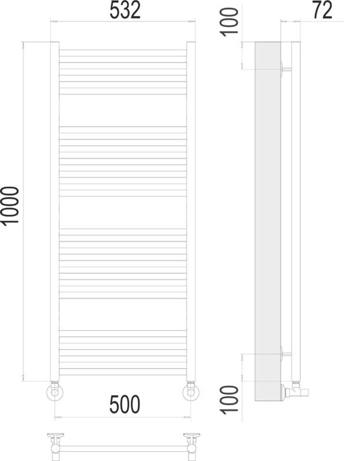 Полотенцесушитель водяной Terminus Аврора 4670078529381, П20 500х1000, ширина 53.2 см, высота 100 см, хром
