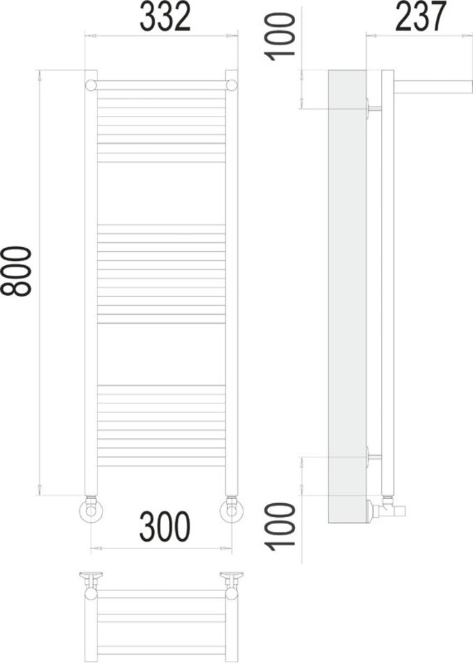 Полотенцесушитель водяной Terminus Аврора 4670078529404, П16 300х800, с полкой, ширина 33.2 см, высота 80 см, хром