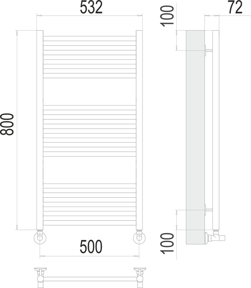 Комплектация: полотенцесушитель, комплект вентиль 3/4х1/2 г/ш квадрат(2шт), эксцентрик(2шт), отражатель(2шт)