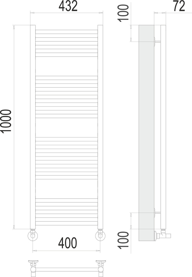 Полотенцесушитель водяной Terminus Аврора П20 400х1000, ширина 40 см, высота 100 см, нижнее подключение 40 см, цвет нержавеющая сталь