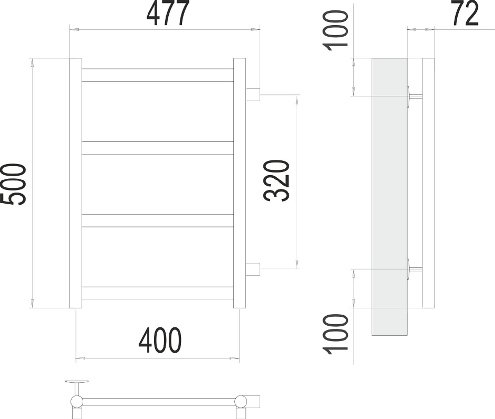 Полотенцесушитель водяной Terminus Аврора П4 400х500 бп320, ширина 48 см, высота 50 см, боковое подключение 32 см, цвет нержавеющая сталь