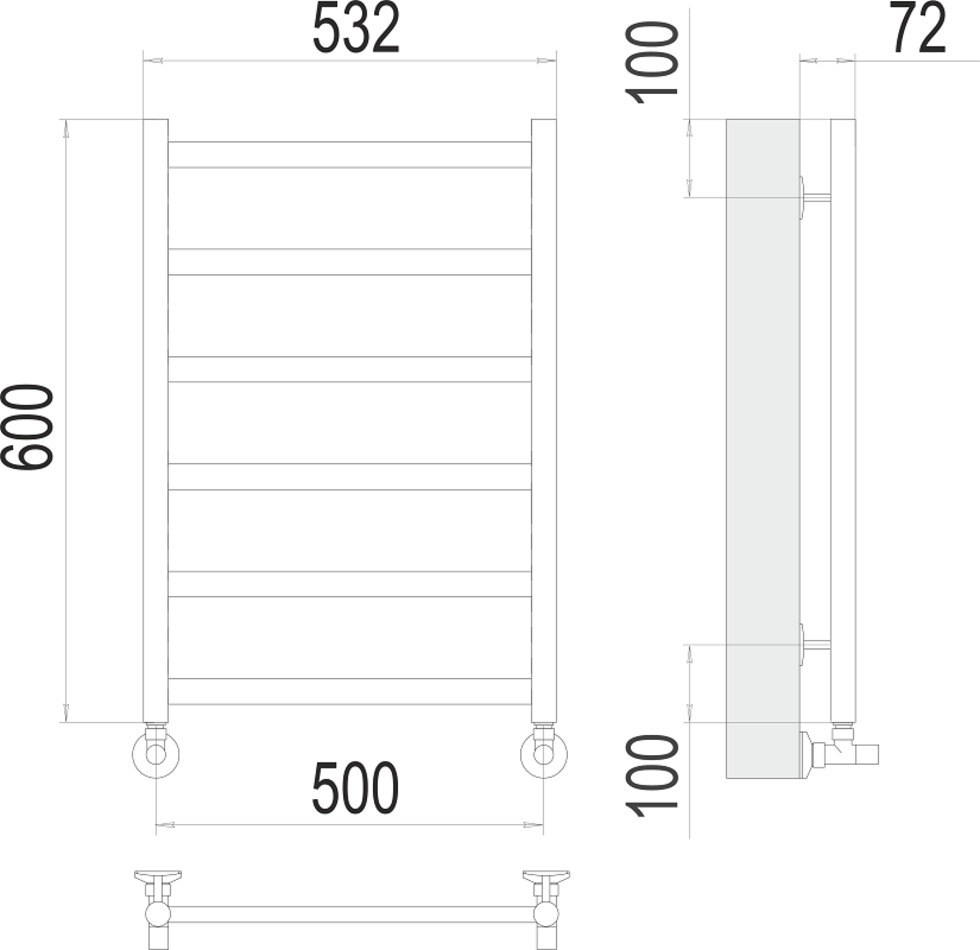 Полотенцесушитель водяной Terminus Аврора П6 500х600, ширина 53 см, высота 60 см, цвет нержавеющая сталь