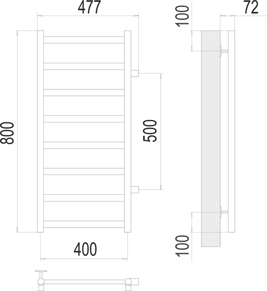 Полотенцесушитель водяной Terminus Аврора П8 400х800 бп500, ширина 48 см, высота 80 см, боковое подключение 50 см, цвет нержавеющая сталь