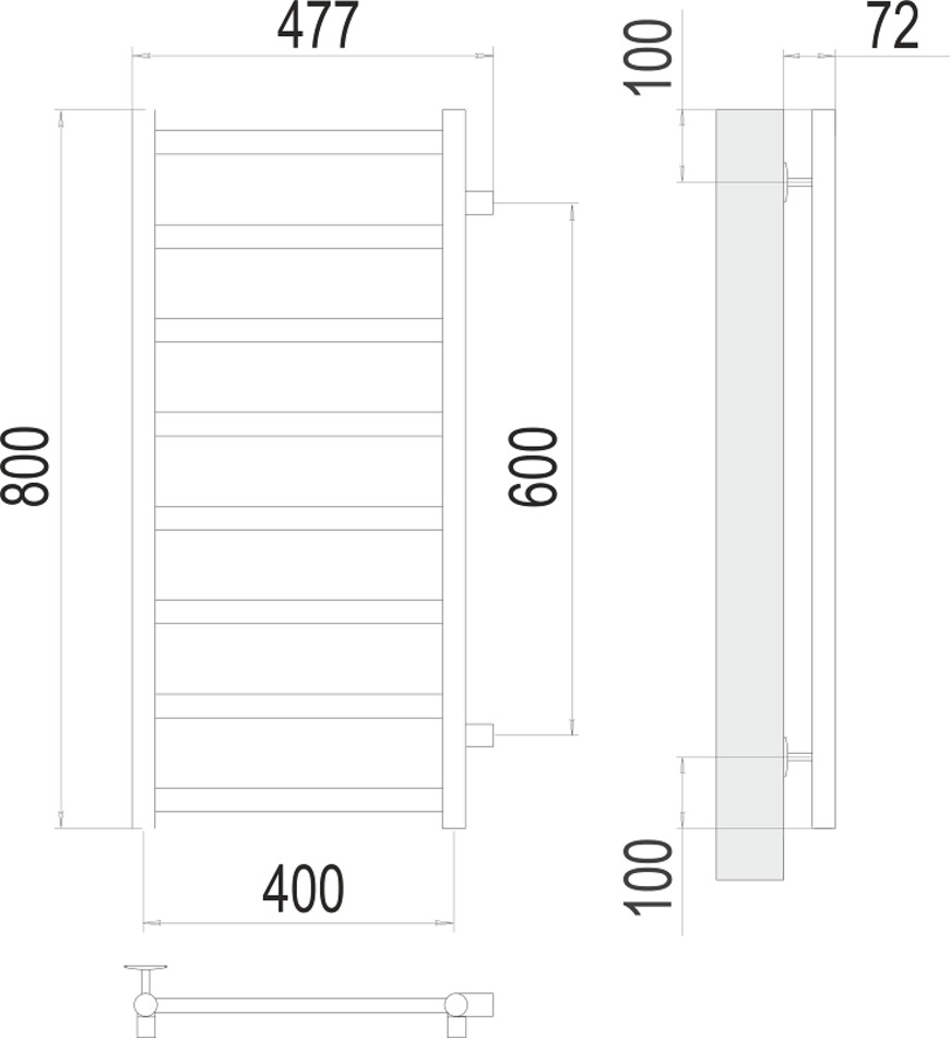 Полотенцесушитель водяной Terminus Аврора П8 400х800 бп600, ширина 48 см, высота 80 см, боковое подключение 60 см, цвет нержавеющая сталь