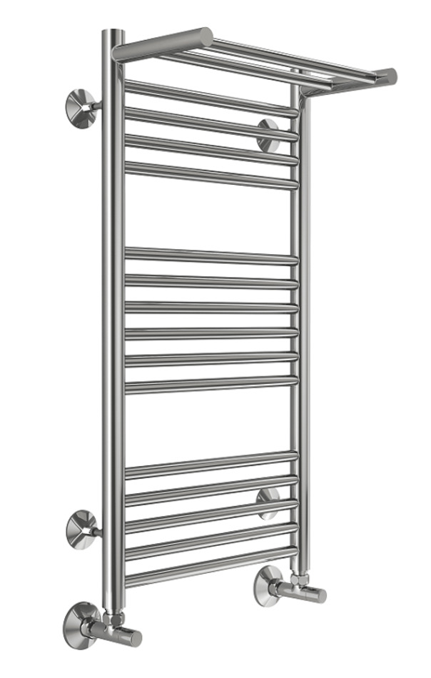 Полотенцесушитель водяной Terminus Аврора с/п П16 400х800 4670078529411, ширина 40 см, высота 80 см, нижнее подключение 40 см, с полкой, цвет нержавеющая сталь