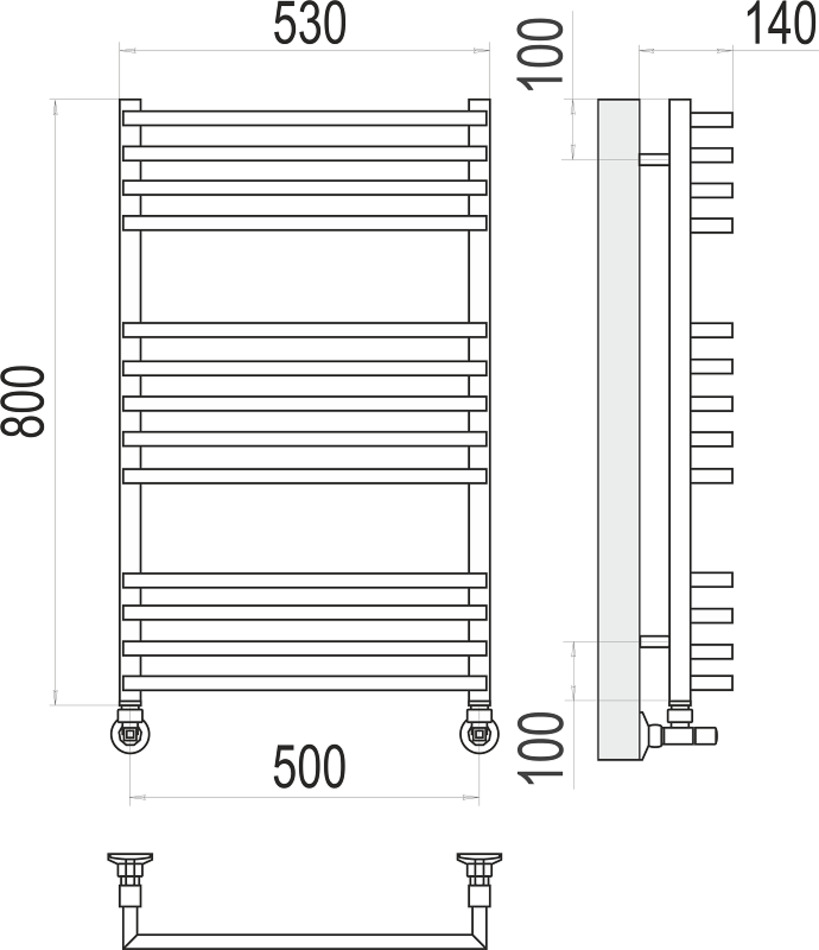 Полотенцесушитель водяной Terminus Берн П13 500х800, ширина 50 см, высота 80 см, нижнее подключение 50 см, цвет нержавеющая сталь