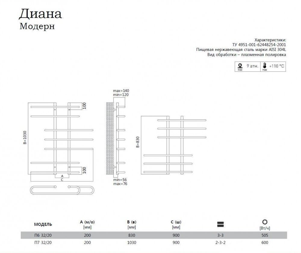 - Материал: пищевая нержавеющая сталь марки AISI 304L