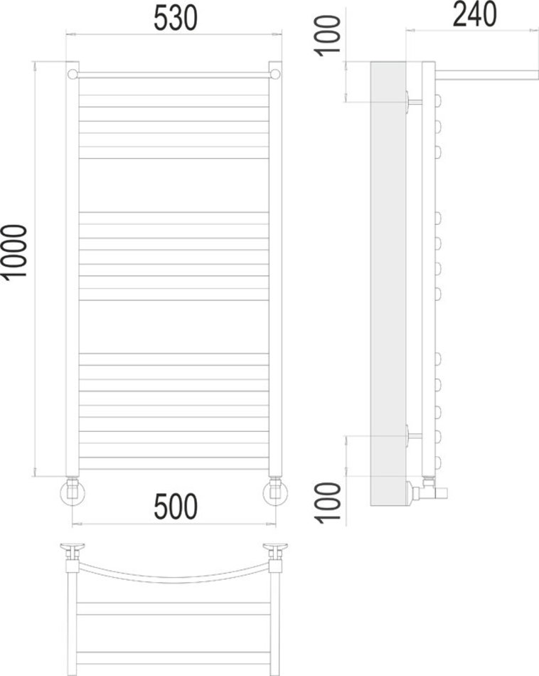Полотенцесушитель водяной Terminus Енисей 4670078529572, П13 500х1000 с полкой, ширина 53 см, высота 100 см, хром
