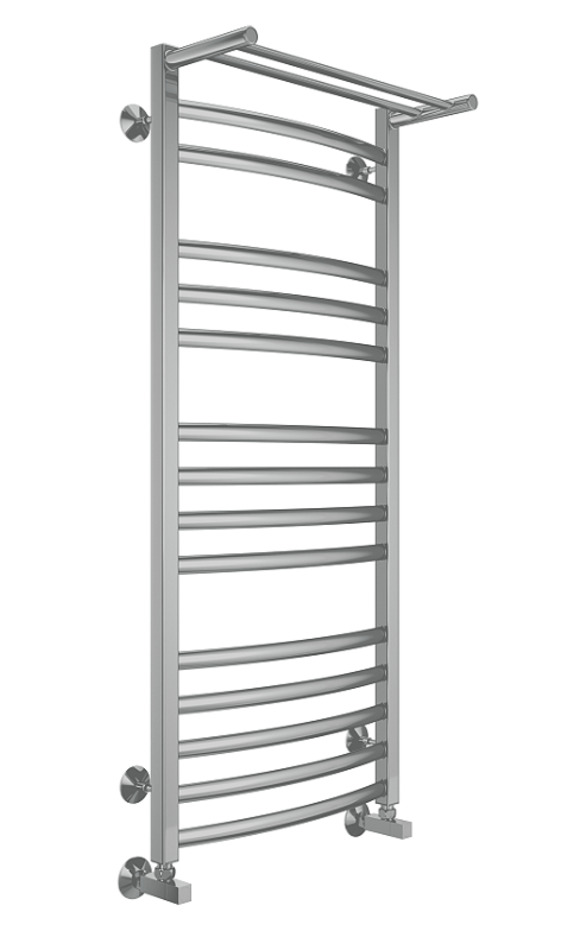 Полотенцесушитель водяной Terminus Енисей с/п П15 500х1200, ширина 53 см, высота 120 см, нижнее подключение 50 см, с полкой, цвет нержавеющая сталь