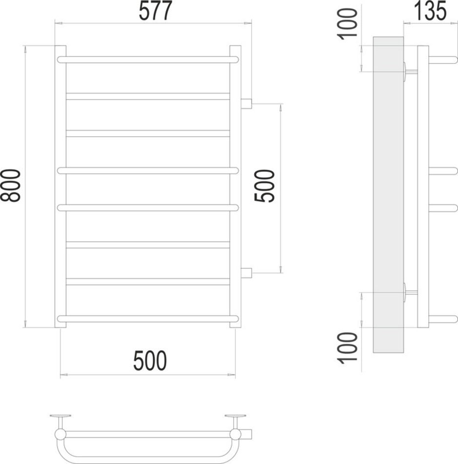 Полотенцесушитель водяной Terminus Евромикс 4670078530158, П8 500х800, ширина 57.7 см, высота 80 см, боковое подключение 50 см, хром