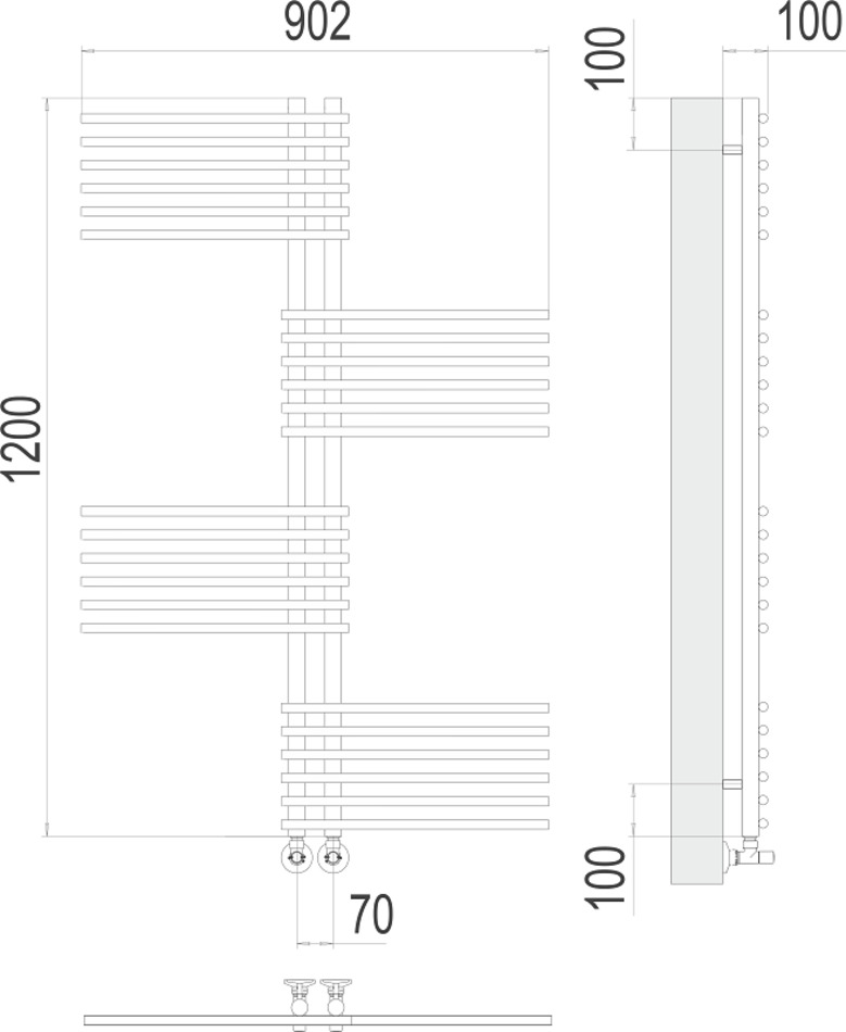 Полотенцесушитель водяной Terminus Европа П24 70х1200, ширина 90 см, высота 120 см, нижнее подключение 7 см, цвет нержавеющая сталь