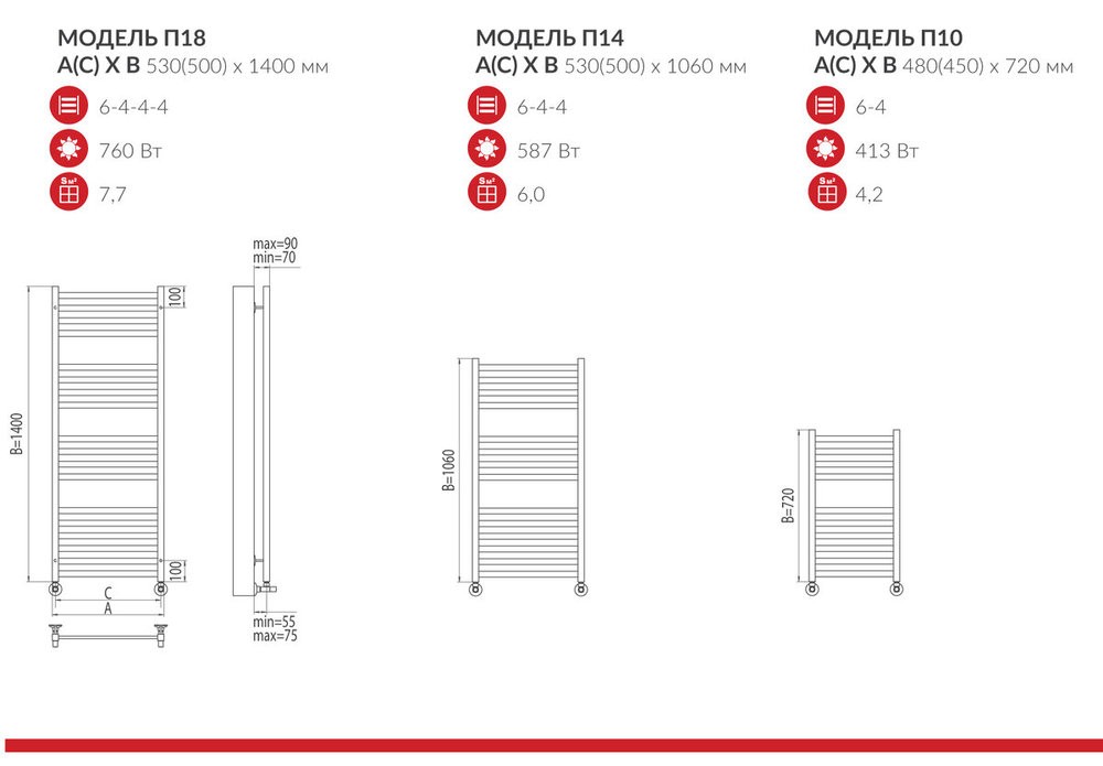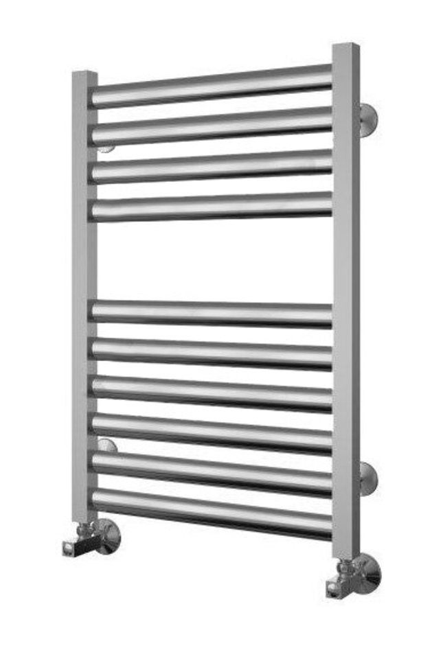 Конструкция состоит из профиля, на котором лесенкой расположены овальные перекладины. Они группируются по 4-6 штук. Общее их количество составляет 10 шт. Нижнее подключение обеспечивает легкий монтаж. Установку можно осуществить в помещении любой площади. Эту модель премиум-серии обязательно оценят любители непревзойденного комфорта, эстетики, практичности.