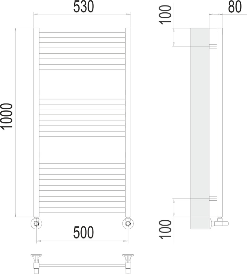 Комплектация: полотенцесушитель, комплект вентиль угл 3/4х1/2 г/ш квадрат(2шт), эксцентрик(2шт), отражатель(2шт)