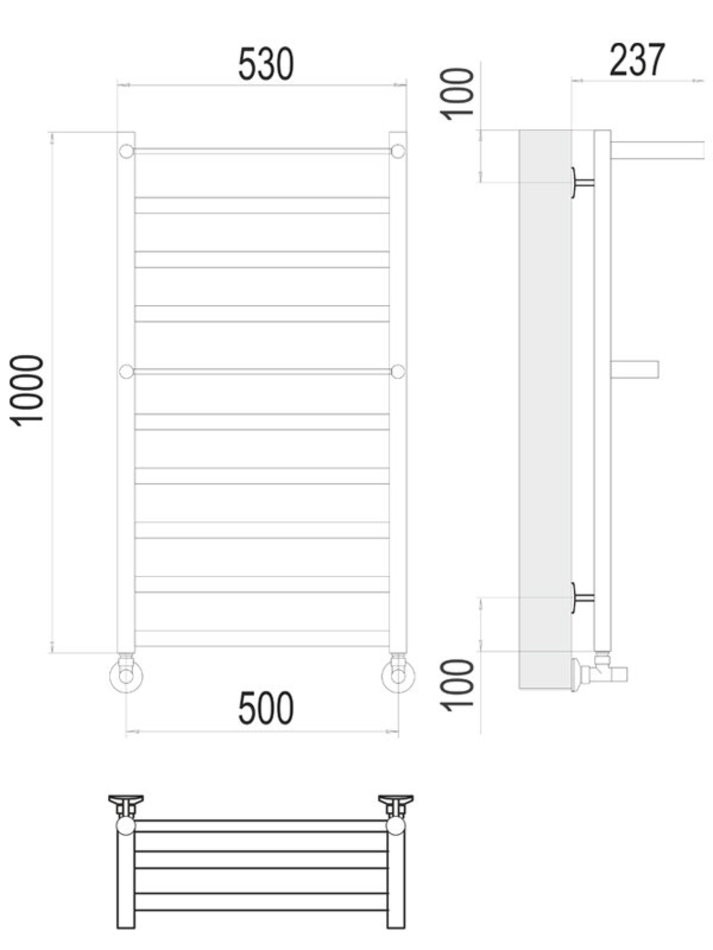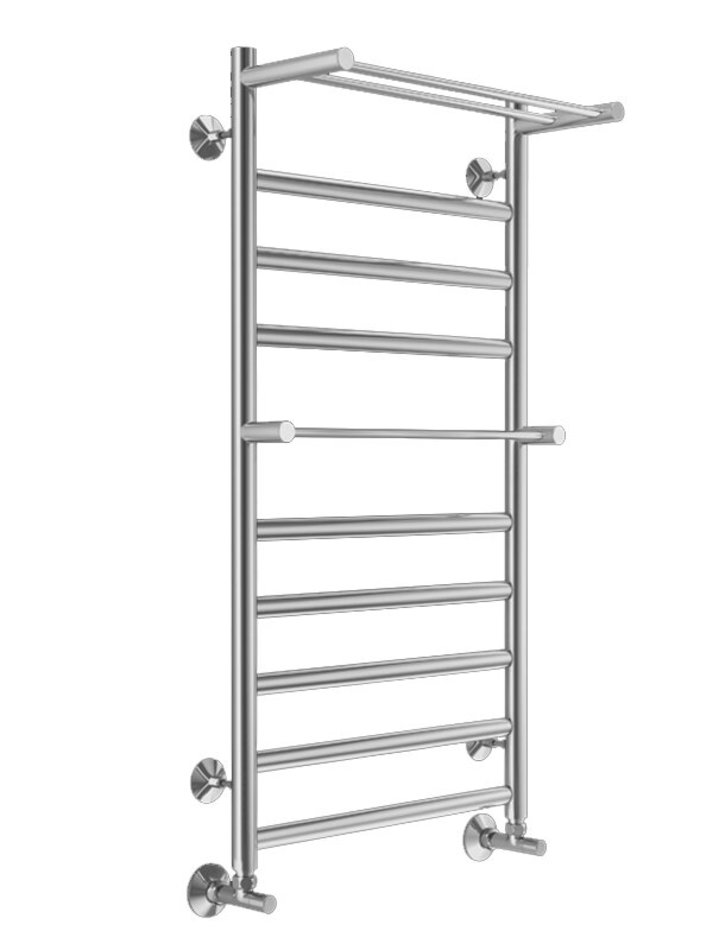 Полотенцесушитель водяной Terminus Хендрикс 4670078529824, П10 500х1000 с полкой, ширина 53.2 см, высота 100 см, хром