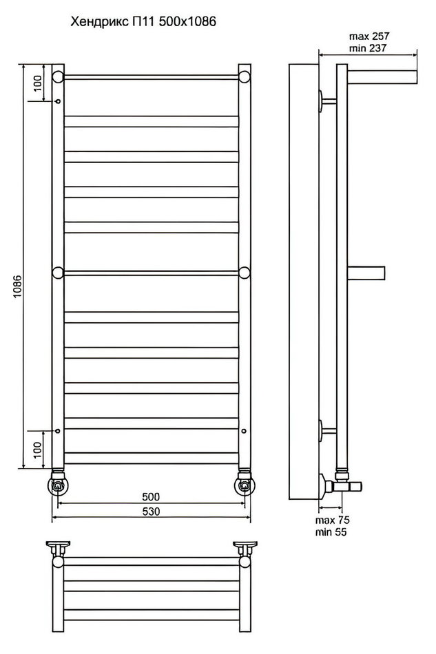 Полотенцесушитель водяной Terminus Хендрикс плюс П11 500x1086, ширина 53.2 см, высота 108.6 см, хром