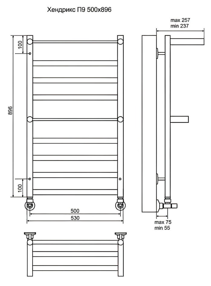 Полотенцесушитель водяной Terminus Хендрикс плюс П9 500x896, ширина 53.2 см, высота 89.6 см, хром