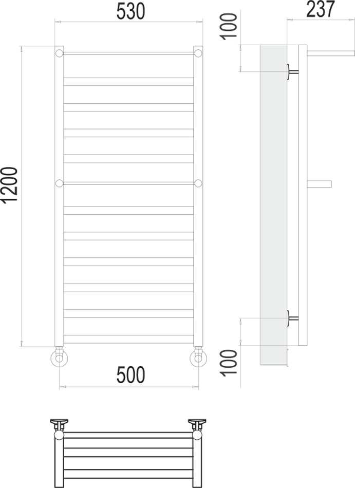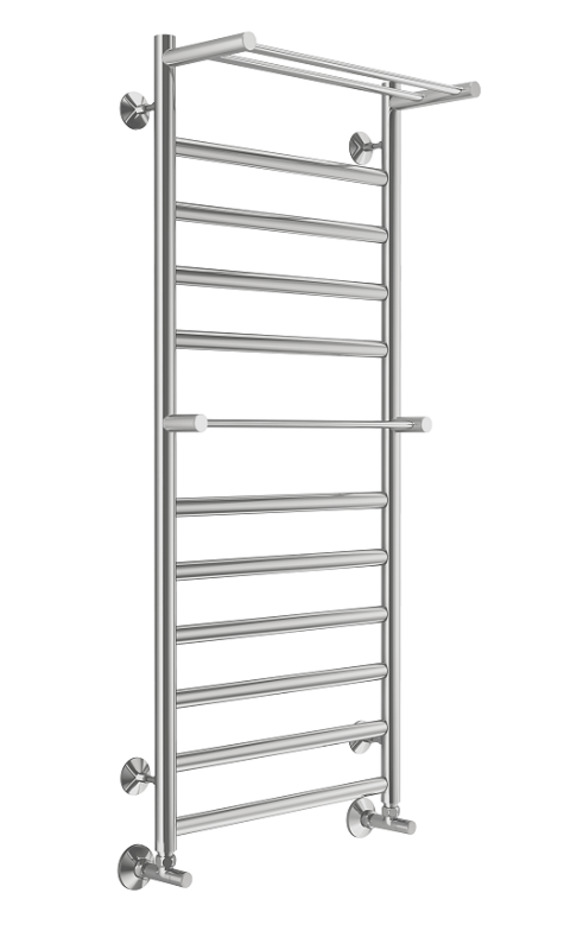 Полотенцесушитель водяной Terminus Хендрикс с/п П12 500х1200, ширина 53 см, высота 120 см, нижнее подключение 50 см, с полкой, цвет нержавеющая сталь