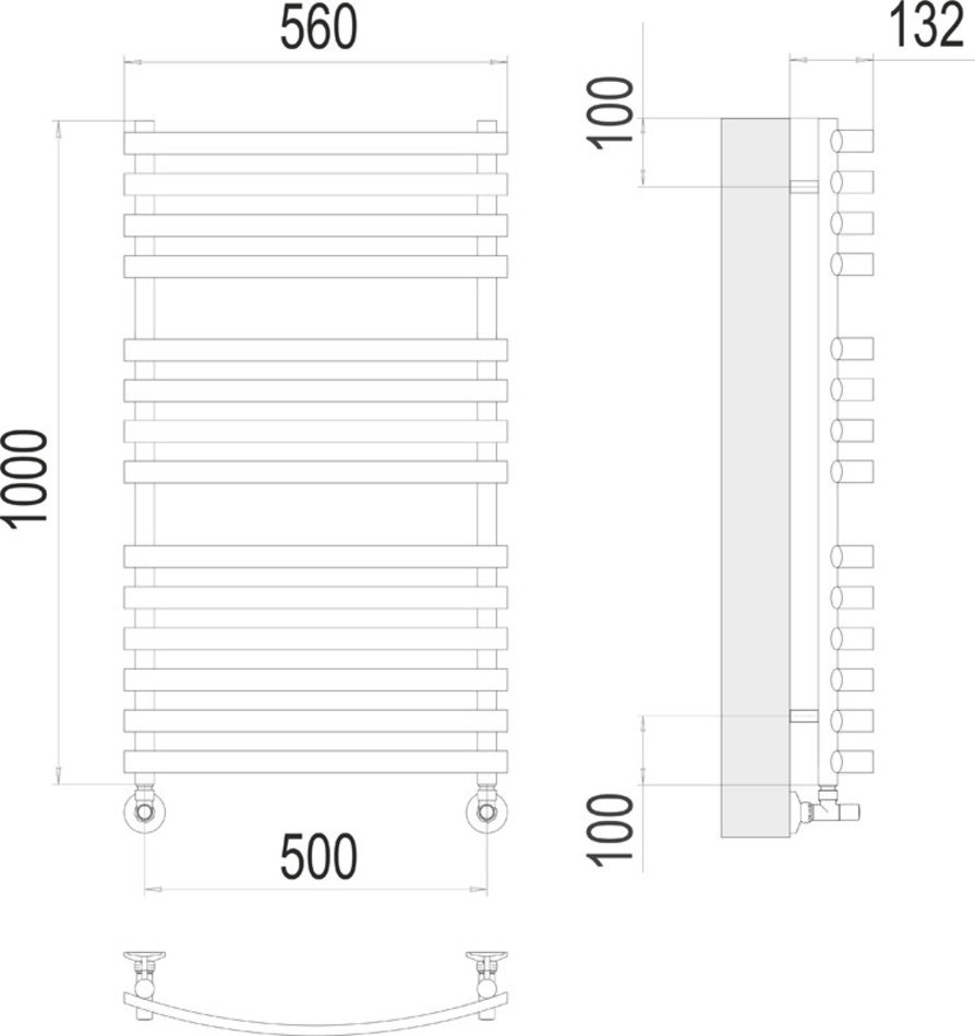 Полотенцесушитель водяной Terminus Капри 4670078530646, П14 500х1000, ширина 56 см, высота 100 см, хром