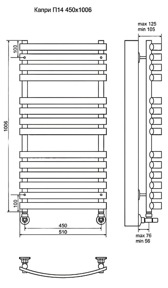 Полотенцесушитель водяной Terminus Капри П18 500x1326, ширина 56 см, высота 132.6 см, хром