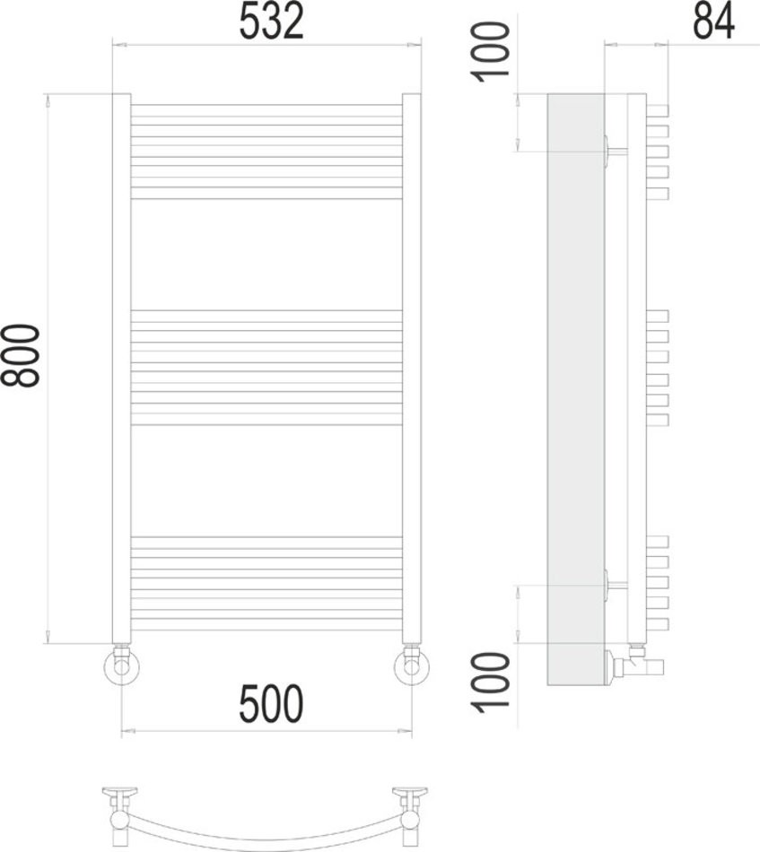 Полотенцесушитель водяной Terminus Классик 4670078529596, П16 500х800, ширина 53.2 см, высота 80 см, хром