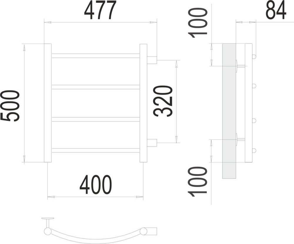 Полотенцесушитель водяной Terminus Классик 4670078530189, П4 400х500, ширина 47.7 см, высота 50 см, боковое подключение 32 см, хром