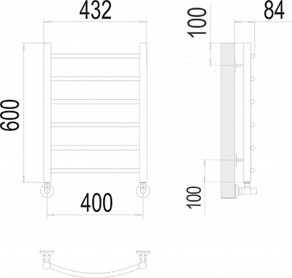 Полотенцесушитель водяной Terminus Классик 4670078530202, П6 400х600, ширина 43.2 см, высота 60 см, хром