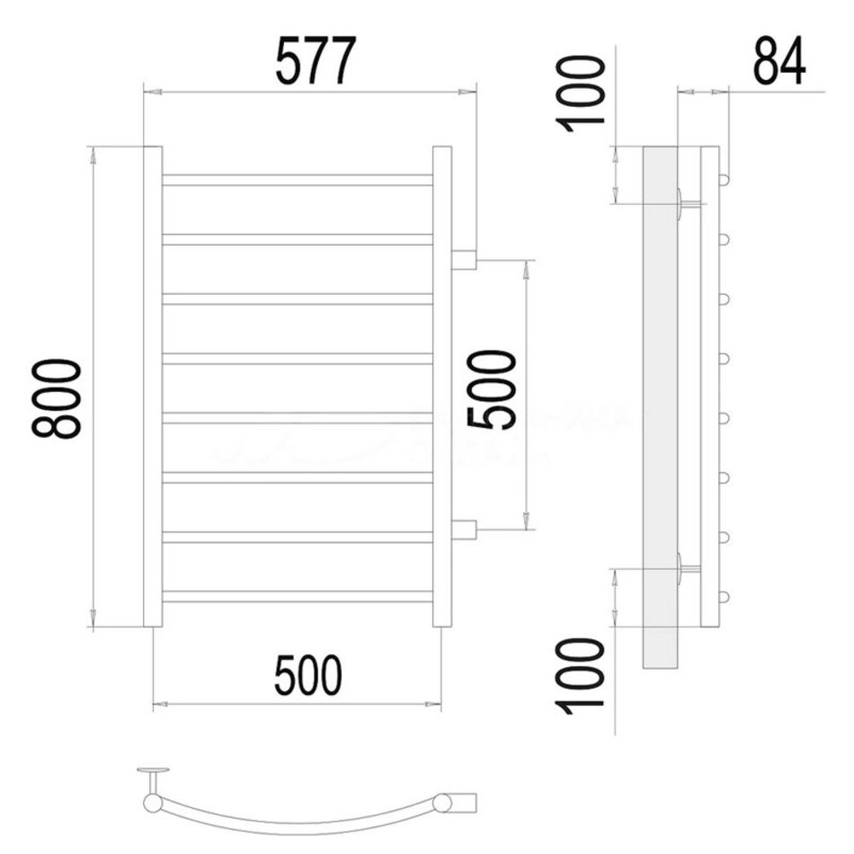 Полотенцесушитель водяной Terminus Классик 4670078530257, П8 500x800, ширина 57.7 см, высота 80 см, боковое подключение 50 см, хром