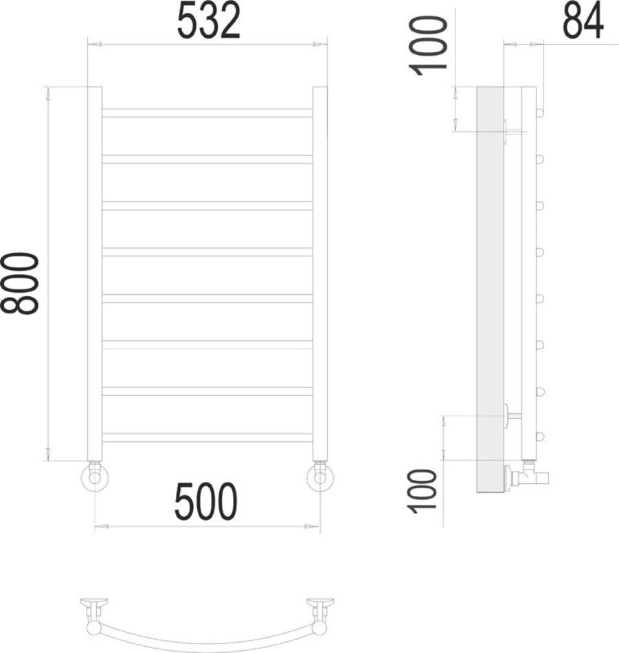 Полотенцесушитель водяной Terminus Классик 4670078530271, П8 500x800, ширина 53.2 см, высота 80 см, хром