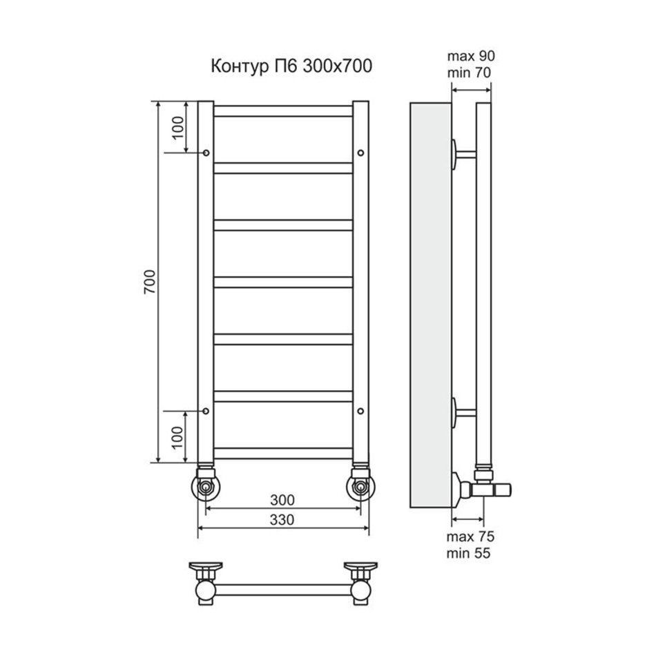 Полотенцесушитель водяной Terminus Контур П6 300x700, ширина 33 см, высота 70 см, хром