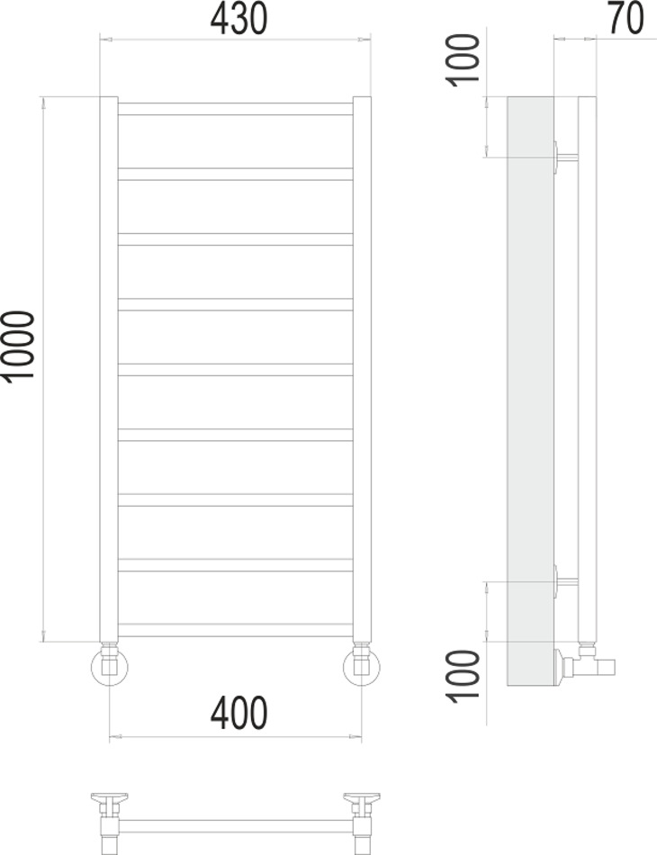 Полотенцесушитель водяной Terminus Контур П9 400х1000, ширина 43 см, высота 100 см, нижнее подключение 40 см, цвет нержавеющая сталь
