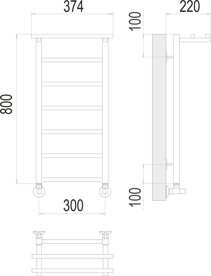 Полотенцесушитель водяной Terminus Контур с/п П7 300х800, ширина 37 см, высота 80 см, с полкой, нижнее подключение 30 см, цвет нержавеющая сталь