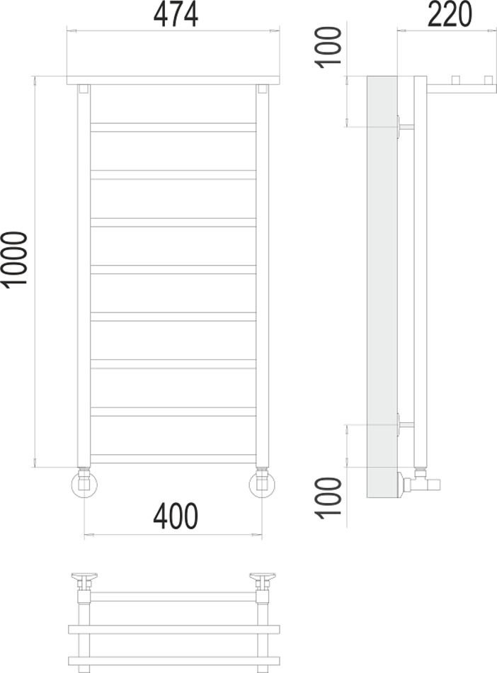 Полотенцесушитель водяной Terminus Контур с/п П9 400х1000, ширина 47 см, высота 100 см, нижнее подключение 40 см, с полкой, цвет нержавеющая сталь