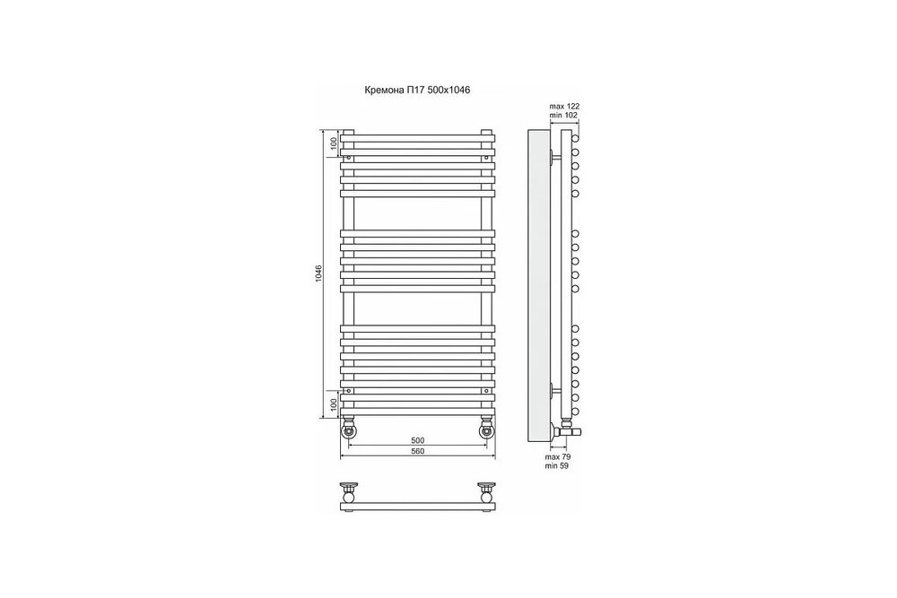 Полотенцесушитель водяной Terminus Кремона П17 500x1046, ширина 50 см, высота 104.6 см, хром