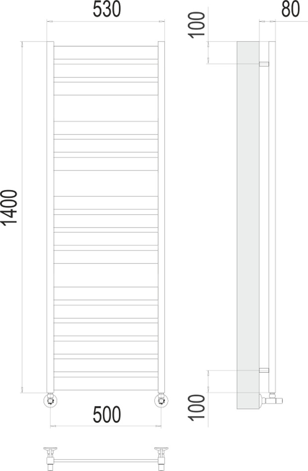 Полотенцесушитель водяной Terminus Латте П16 500х1400, ширина 50 см, высота 140 см, нижнее подключение 50 см, цвет нержавеющая сталь