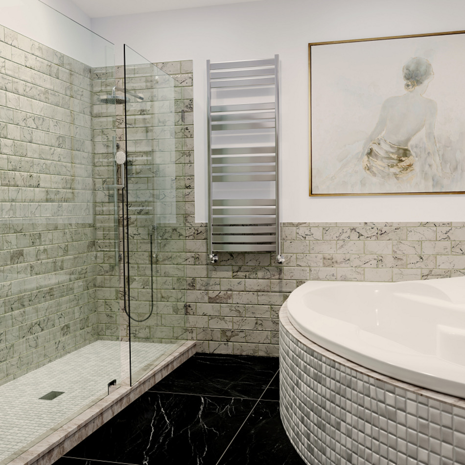 Модель «Латте» ‒ олицетворение стиля хай-тек, который отличает высокая технологичность и эксклюзивные элементы. Профильные перекладины не только создают ультрасовременный внешний вид, но и обеспечивают высокую теплоотдачу, создавая благоприятный микроклимат в ванной комнате.