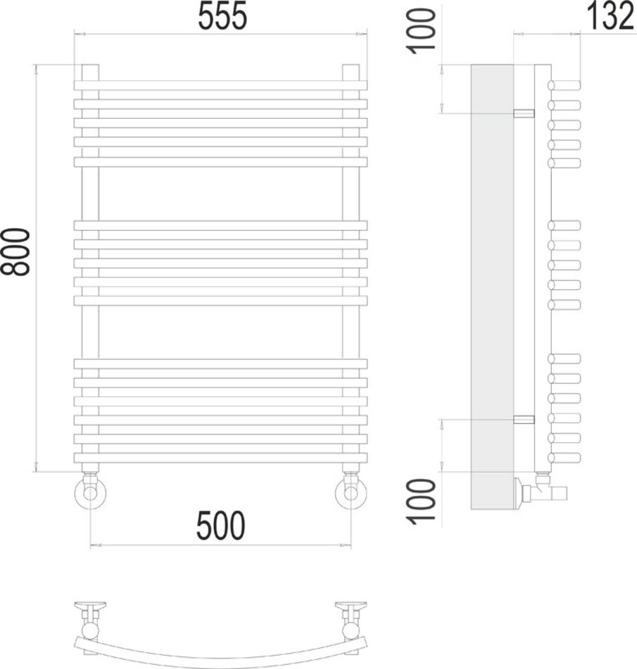 Полотенцесушитель водяной Terminus Марио 4670078530738, П16 500х800, ширина 55 см, высота 80 см, хром