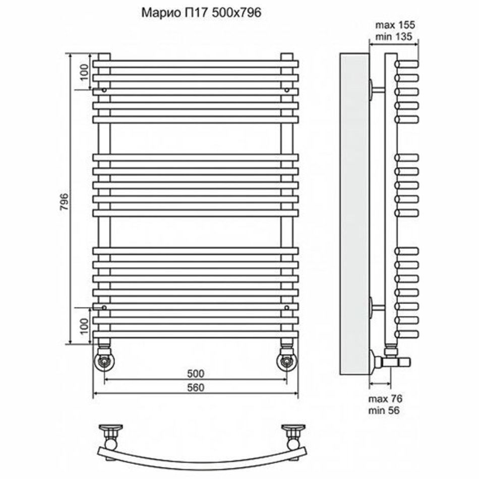 Полотенцесушитель водяной Terminus Марио П17 500x796, ширина 56 см, высота 79.6 см, хром