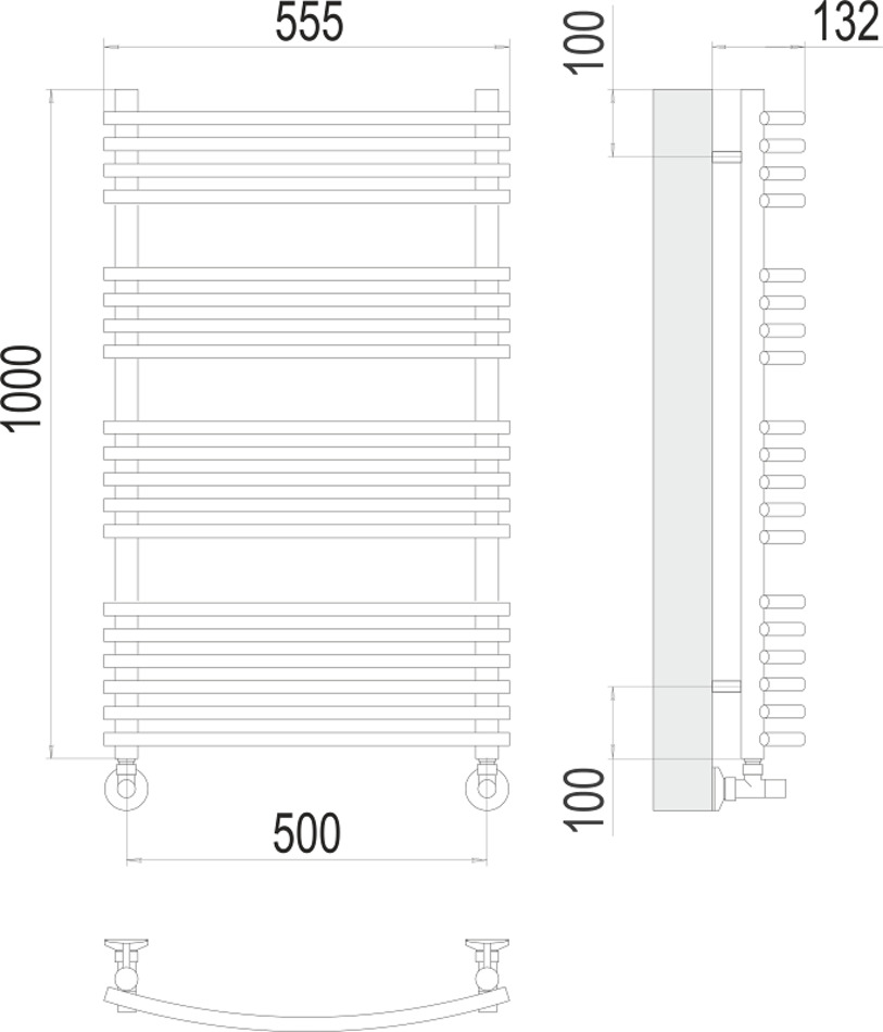 Полотенцесушитель водяной Terminus Марио П19 500х1000, ширина 55 см, высота 100 см, нижнее подключение 50 см, цвет нержавеющая сталь