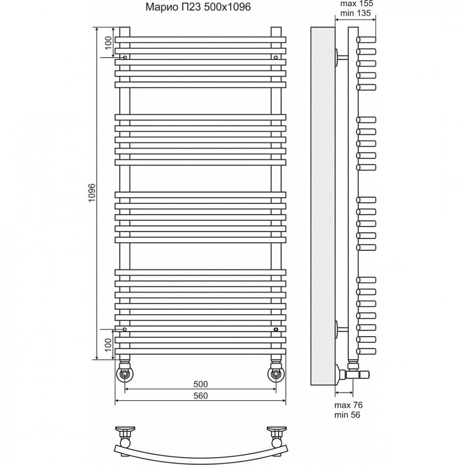 Полотенцесушитель водяной Terminus Марио П23 500x1096, ширина 56 см, высота 109.6 см, хром