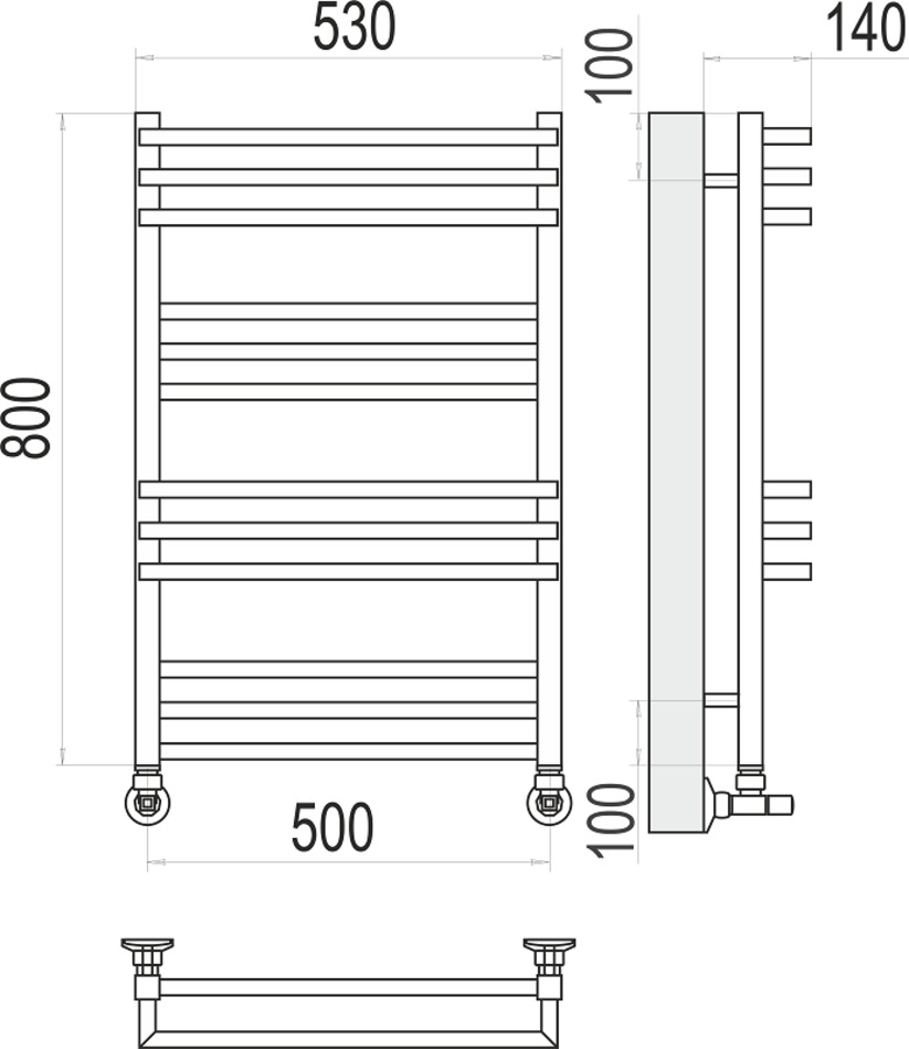Комплектация: полотенцесушитель, комплект вентиль угл 3/4х1/2 г/ш квадрат(2шт), эксцентрик(2шт), отражатель(2шт)