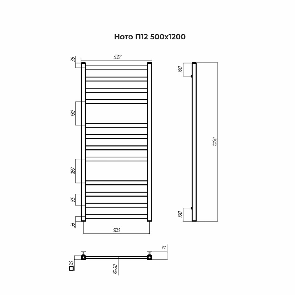 Модель «Ното» ‒ стильное и ультрамодное решение для вашей ванной в современном стиле хай-тек, который сложно представить без высокотехнологичных форм и строгих линий. За счет прямоугольных перекладин она обладает повышенной теплоотдачей и способствует созданию приятного микроклимата в помещении.