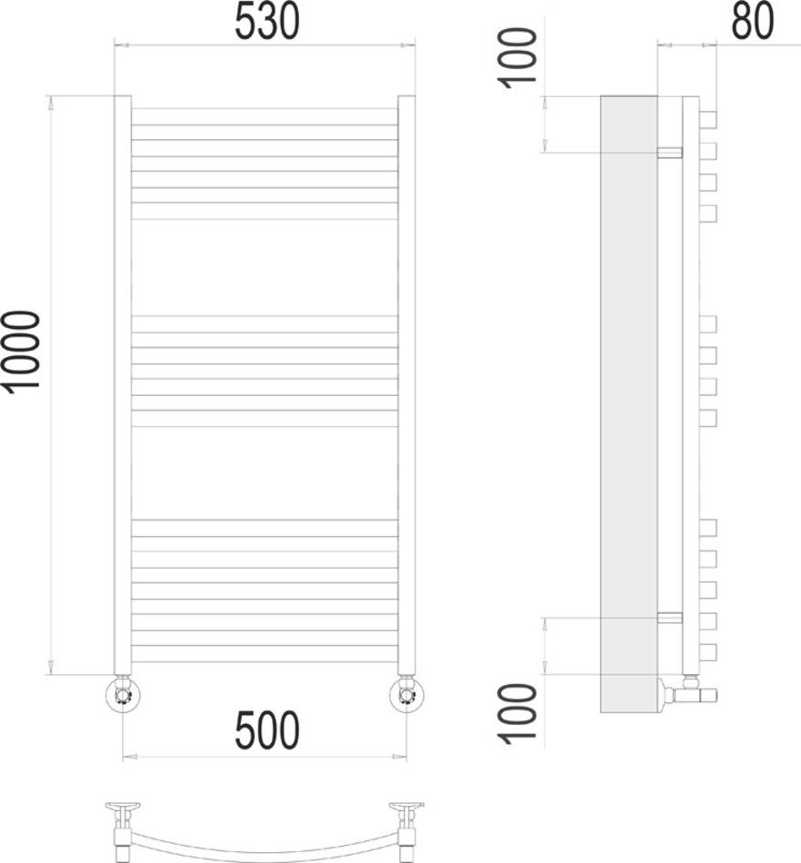Полотенцесушитель водяной Terminus Палермо 4670078530769, П13 500х1000, ширина 53 см, высота 100 см, хром