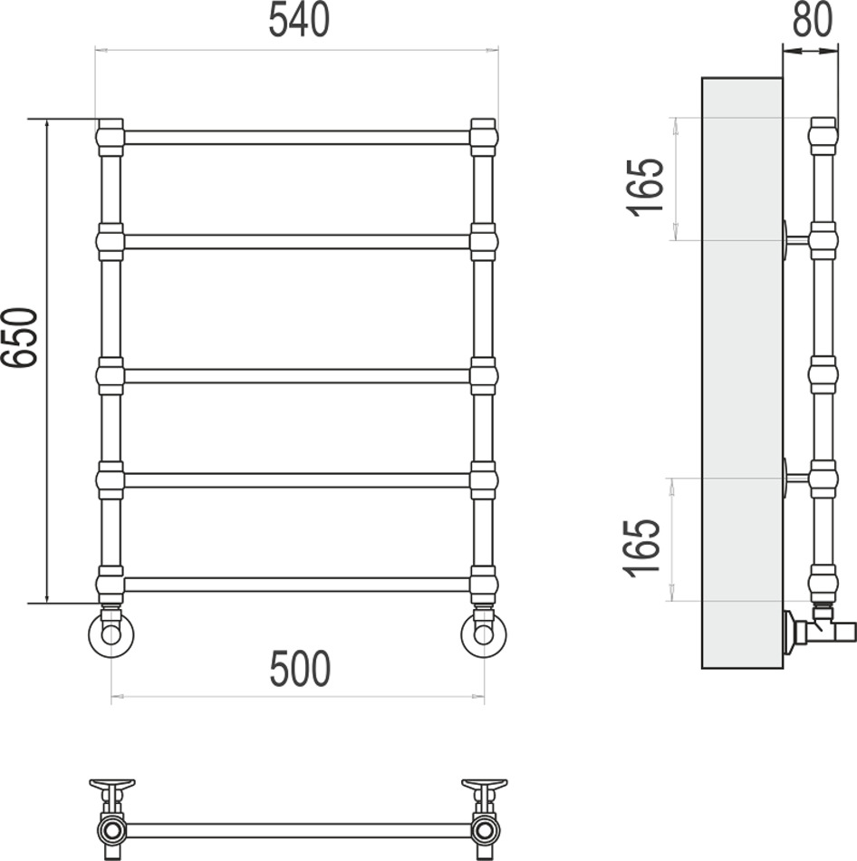 Полотенцесушитель водяной Terminus Прованс П5 500х650, ширина 54 см, высота 65 см, нижнее подключение 50 см, цвет нержавеющая сталь