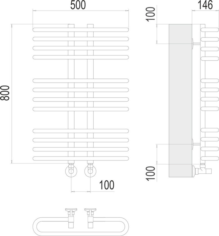 Полотенцесушитель водяной Terminus Сахара 4670078529770, П12 500х800, ширина 50 см, высота 80 см, хром