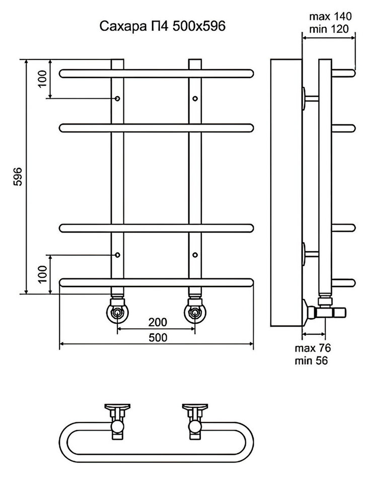 Полотенцесушитель водяной Terminus Сахара П4 500x596, ширина 50 см, высота 59.6 см, хром