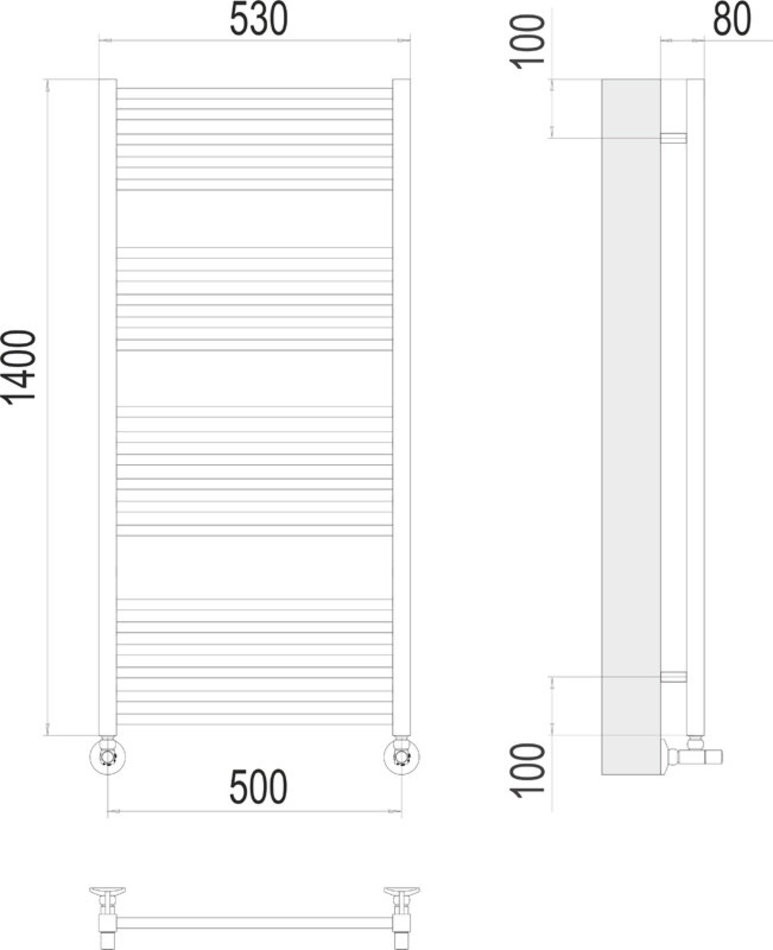 Полотенцесушитель водяной Terminus Сицилия 4670078530820, П22 500х1400, ширина 53 см, высота 140 см, хром