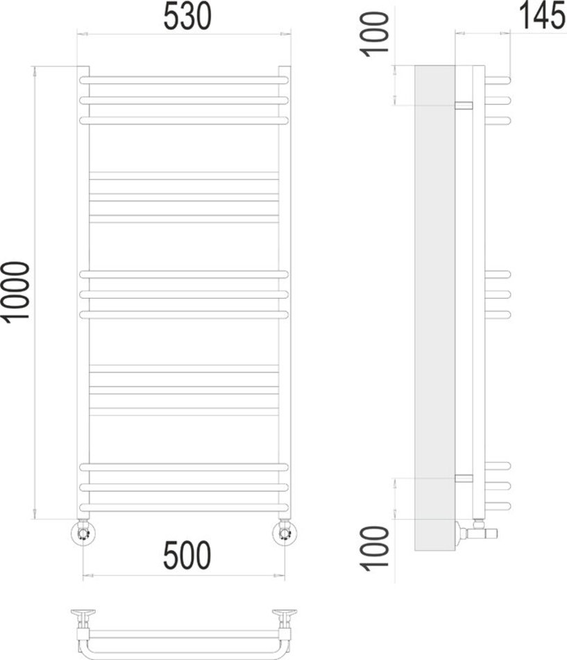 Полотенцесушитель водяной Terminus Соренто 4670078530844, П15 500х1000, ширина 53 см, высота 100 см, хром